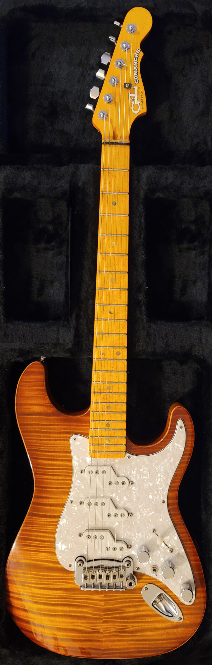 Authentic 50’s Fender Telecaster Blackguard copy. Amazing guitar, everything is handmade, including the pickups. Unbelievable feel, playability and sound. Equals or beats Fender Custom shop guitars. (picture left)