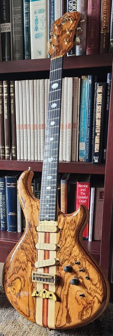 Alembic “Darling Custom” 2008 – Zebrano & Purple Heart Top on Flamed Maple Body, Ebony Fretboard, MOP Inlays.
